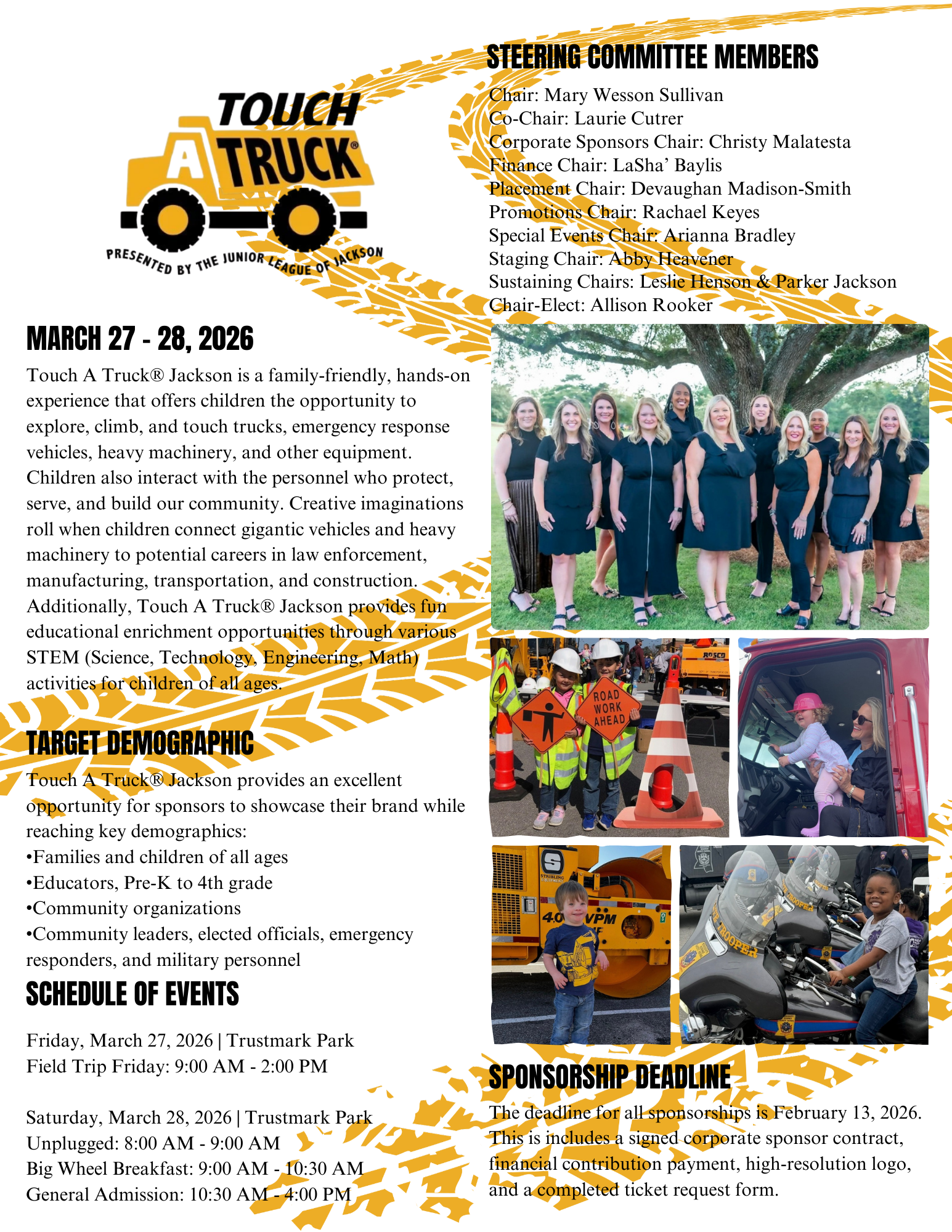 Thank you for your interest in Touch A Truck® Jackson – presented by the Junior League of Jackson.